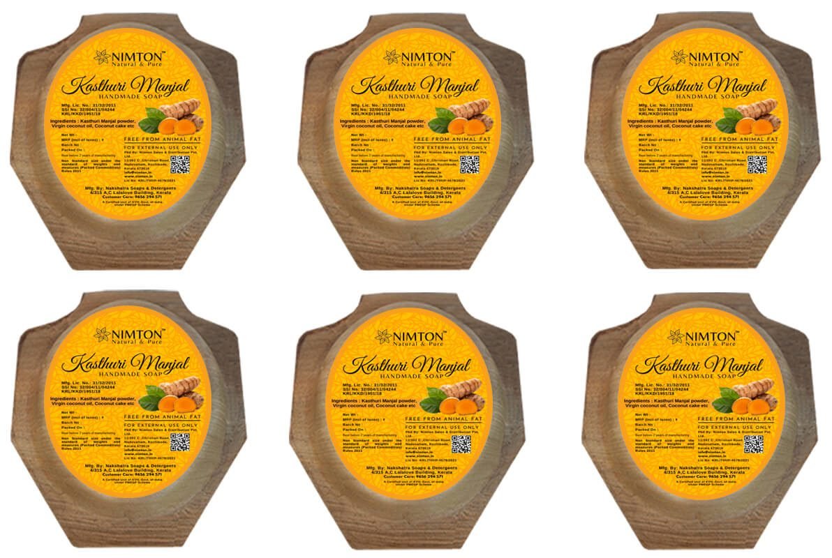 Kerala Ayurvedic Handmade kasthuri manjal herbal bath soap( Kasturimanjal / Wild Turmeric / Aromatic Turmeric / Jangalee Haldee Soap – 750 gm : 125 gm x 6)