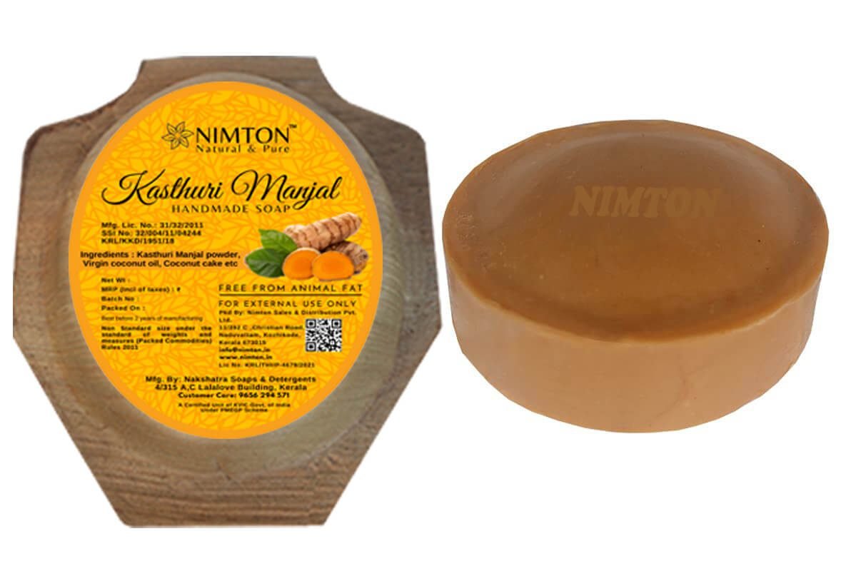 Handmade kasthuri manjal herbal bath soap with ingredients kasturimanjal (wild turmeric / aromatic turmeric / jangalee haldee )powder, virgin coconut oil etc.